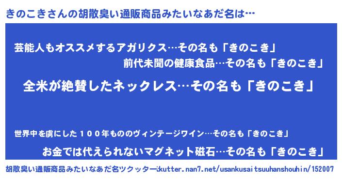 | ヘコむあだ名 | 『きの太郎』『きのこき(遠い目)』 |