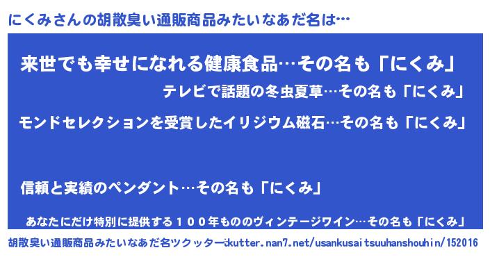 | ヘコむあだ名 | 『にくみ(爆)』『にくっ子』 |
