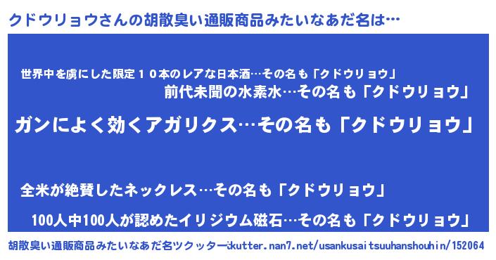 | 意味不明あだ名 | 『自称クドウリョウ』 |