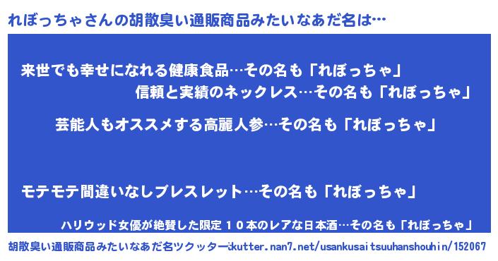 | 意味不明あだ名 | 『自称れぼっちゃ』『永久保存れぼっちゃ』 |