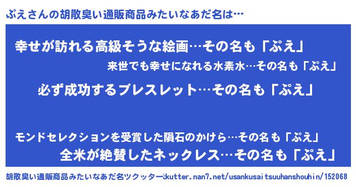 | ヘコむあだ名 | 『ぷえにー』『牛乳』『ぷえを』 |