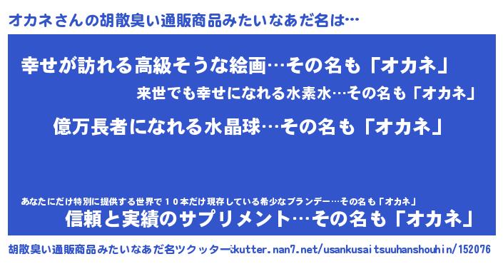 | 肩書あだ名 | 『オカネCEO』『オカネ総理大臣』 |