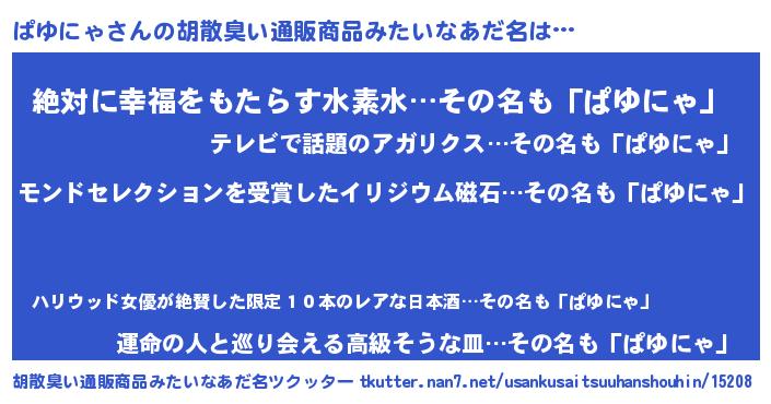 | ヘコむあだ名 | 『ぱゆにゃ(爆)』『酢こんぶ』 |