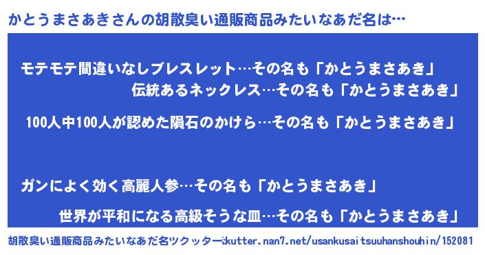 | ヒーロー風カッコイイあだ名 | 『友情の使者かとうまさあき』 |