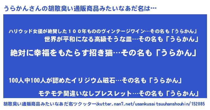 | ヘコむあだ名 | 『うらかん(小並感)』『うらにー』 |