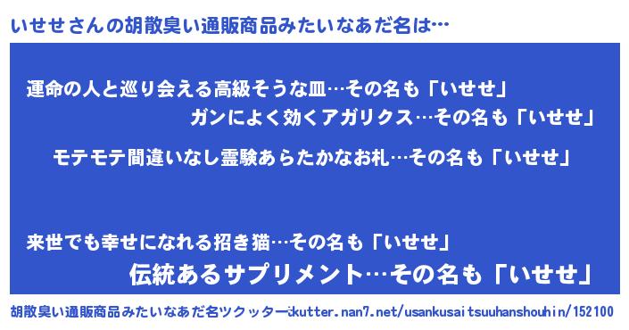 | ヒーロー風カッコイイあだ名 | 『スーパーイセセ』『ウルトラいせせマン』 |