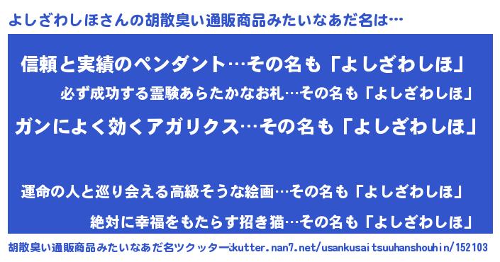 | 意味不明あだ名 | 『自称よしざわしほ』 |