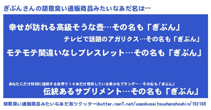 | 男性向けラノベタイトル風あだ名 | 『転生したらぎぶんだった件』 |