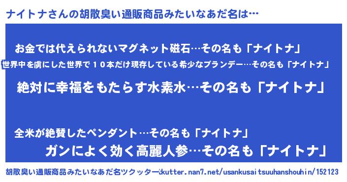 | ヘコむあだ名 | 『ナイトナ(震え声)』『ナイお』 |