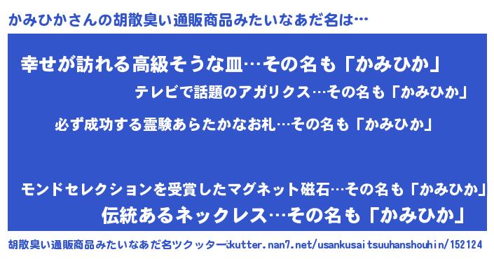 | 男性向けラノベタイトル風あだ名 | 『かみひかの憂鬱』 |