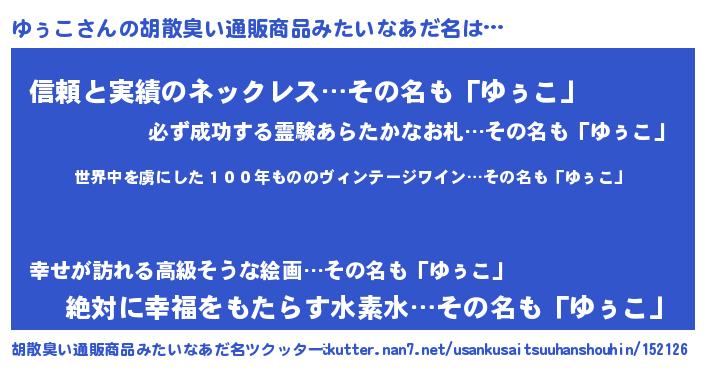 | ピコ太郎風あだ名 | 『ユゥ太郎』『ピコユ郎』『ユコ三郎』 |