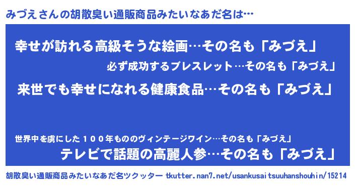 | ヘコむあだ名 | 『みづえ(爆)』『牛乳』『みづにゅー』 |