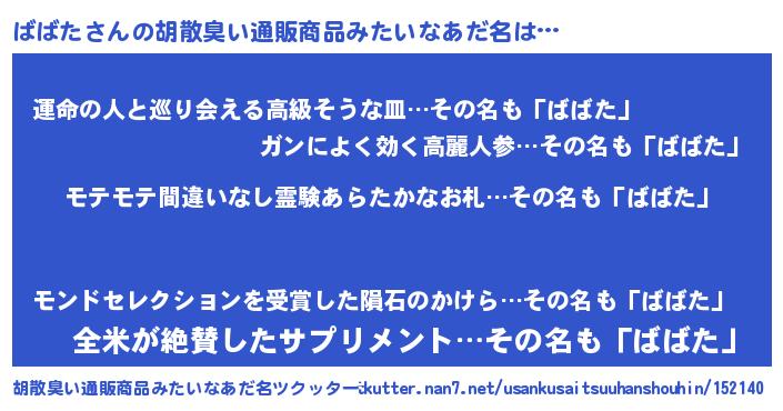 | ヒーロー風カッコイイあだ名 | 『スーパーババタ』『ウルトラばばたマン』 |