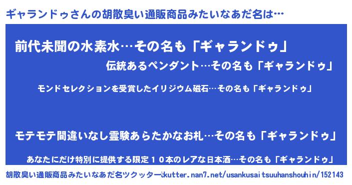 | 伝説のあだ名 | 『救世主となる占い師ギャランドゥ』 |