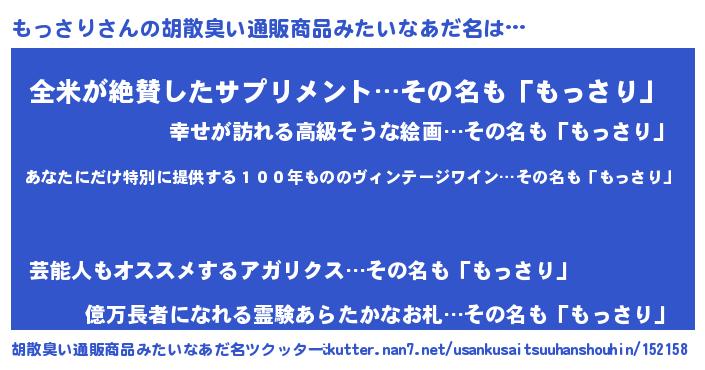 | 男性向けラノベタイトル風あだ名 | 『この素晴らしい世界にもっさりを!』 |