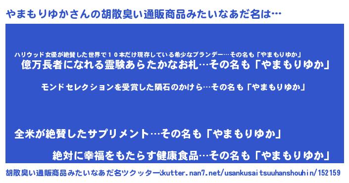 | ヘコむあだ名 | 『やまもりゆか(苦笑)』『やまっふぃ~』 |