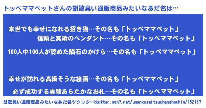 | ヘコむあだ名 | 『トッペママペット(遠い目)』『トッお』 |