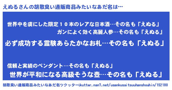 | 男性向けラノベタイトル風あだ名 | 『えぬるの憂鬱』『魔弾の王とえぬる』 |