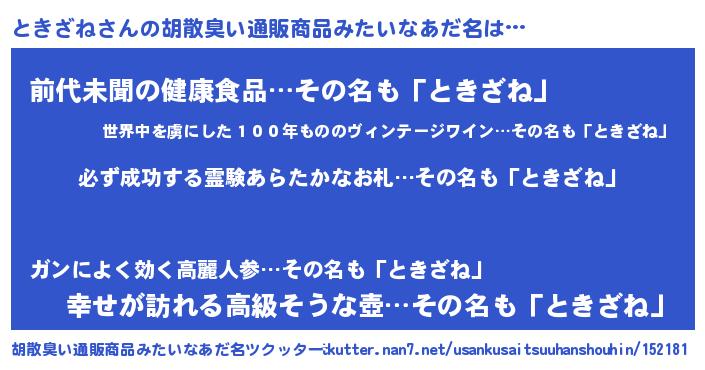 | 意味不明あだ名 | 『ペロリンときざね』『永久保存ときざね』 |