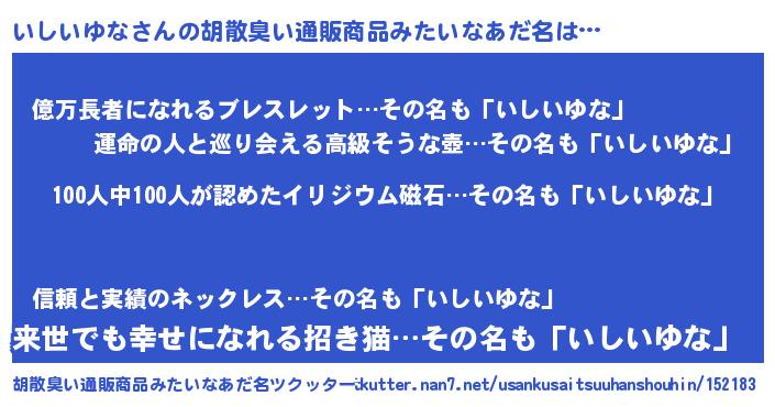 | 意味不明あだ名 | 『めかぶ科いしいゆな属』 |