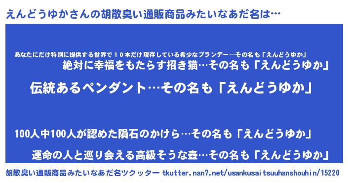 | 男性向けラノベタイトル風あだ名 | 『えんどうゆかの嫁は女の子じゃないと思った?』 |