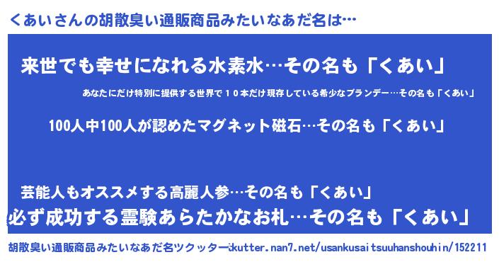 | ヘコむあだ名 | 『くあい(笑)』『くあふぇ~』『牛乳』 |