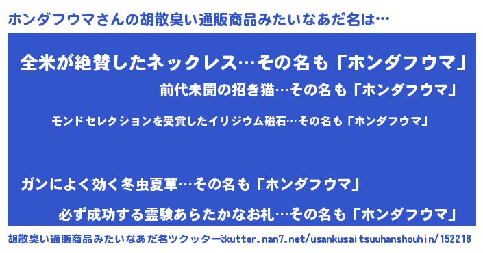 | 伝説のあだ名 | 『救世主となる占い師ホンダフウマ』 |