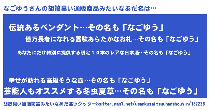 | 意味不明あだ名 | 『住所不定無職なごゆう(14歳)』 |