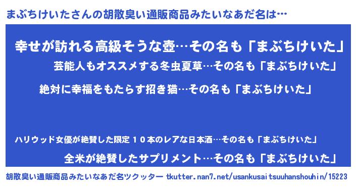 | ヘコむあだ名 | 『まぶちけいた(笑)』『なまこ酢』 |