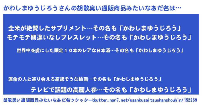 | 男性向けラノベタイトル風あだ名 | 『この素晴らしい世界にかわしまゆうじろうを!』 |