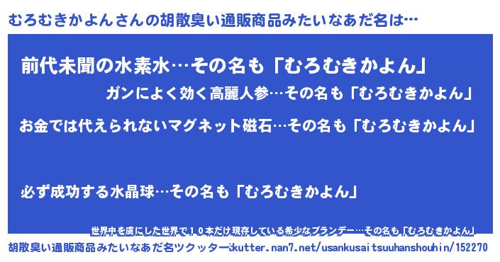 | ヘコむあだ名 | 『むろむきかよん(小並感)』『むろっふぃ~』 |