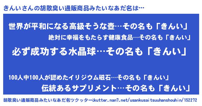| ヒーロー風カッコイイあだ名 | 『スーパーキンイ』『ウルトラきんいマン』 |