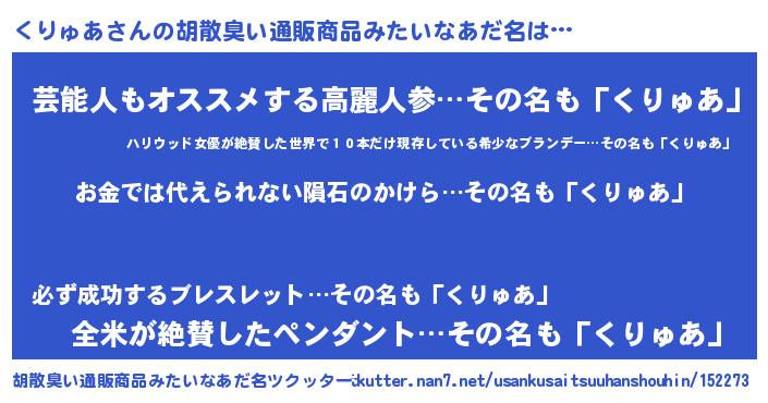 | ヒーロー風カッコイイあだ名 | 『愛の使者くりゅあ』『最強戦士クリュア』 |