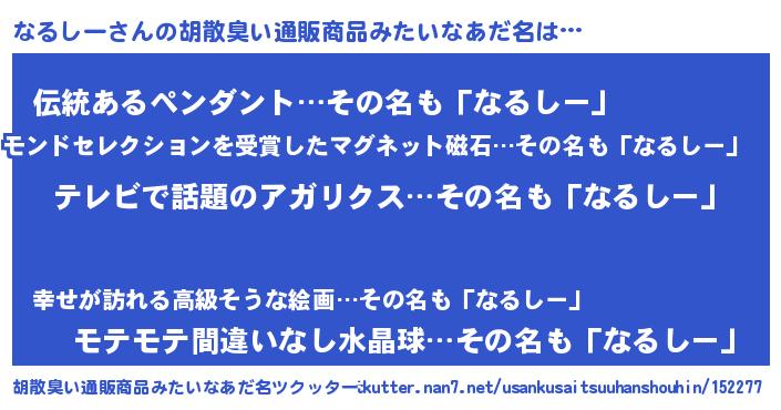 | 意味不明あだ名 | 『自称なるしー』『めかぶ科なるしー属』 |
