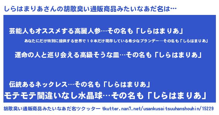 | 肩書あだ名 | 『しらはまりあ国家主席』 |