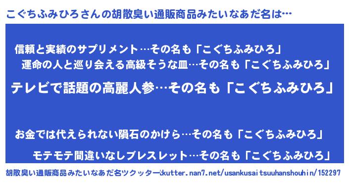 | 意味不明あだ名 | 『自称こぐちふみひろ』 |