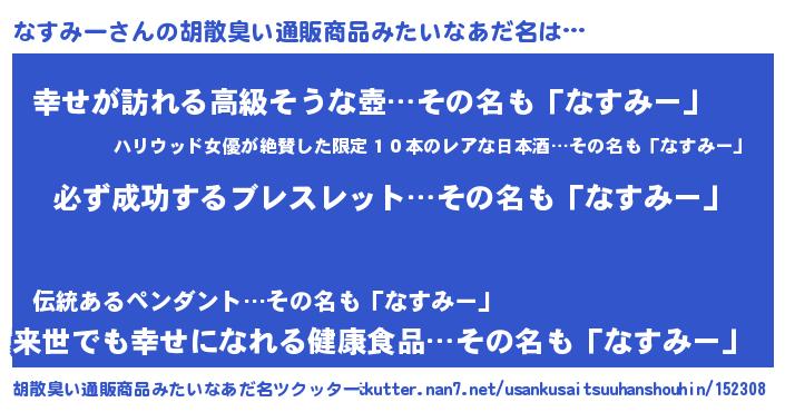 | 意味不明あだ名 | 『ペロリンなすみー』『永久保存なすみー』 |