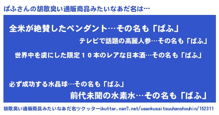 ばふさんの胡散臭い通販商品みたいなあだ名をツクッター!