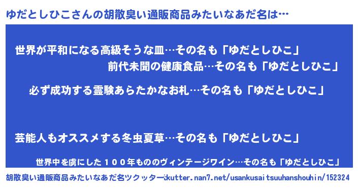 ゆだとしひこさんの胡散臭い通販商品みたいなあだ名をツクッター!