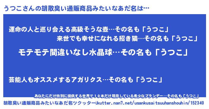 | ヒーロー風カッコイイあだ名 | 『スーパーウツコ』『ウルトラうつこマン』 |