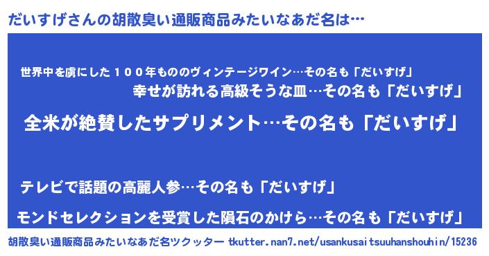 | ヘコむあだ名 | 『だいお』『つくし』『だいふぇ~』 |