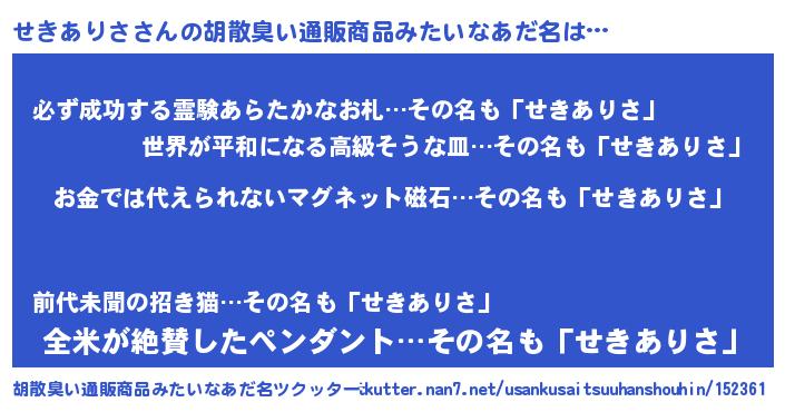 | 欧米人風あだ名 | 『せきありさ・ステッグマイヤー』 |