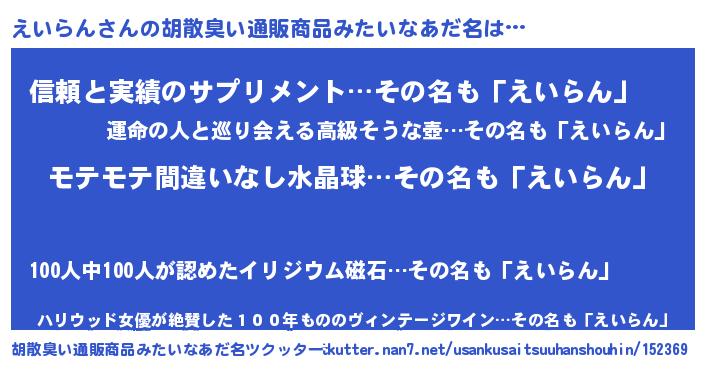 | 男性向けラノベタイトル風あだ名 | 『えいらんの憂鬱』『魔弾の王とえいらん』 |