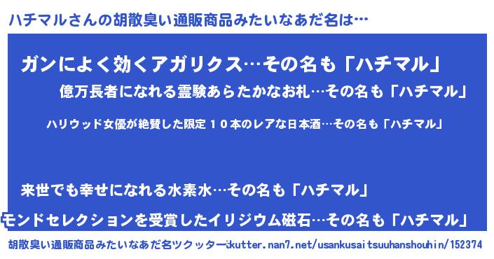 | 恥ずかしいあだ名 | 『ハチマルデラックス』『ハチちん』 |