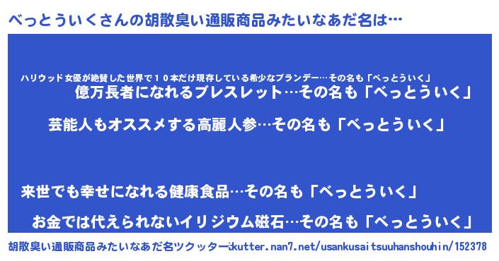| ヘコむあだ名 | 『べっにー』『べっとういく(遠い目)』 |