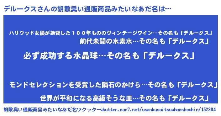 | 男性向けラノベタイトル風あだ名 | 『デルークスの憂鬱』 |