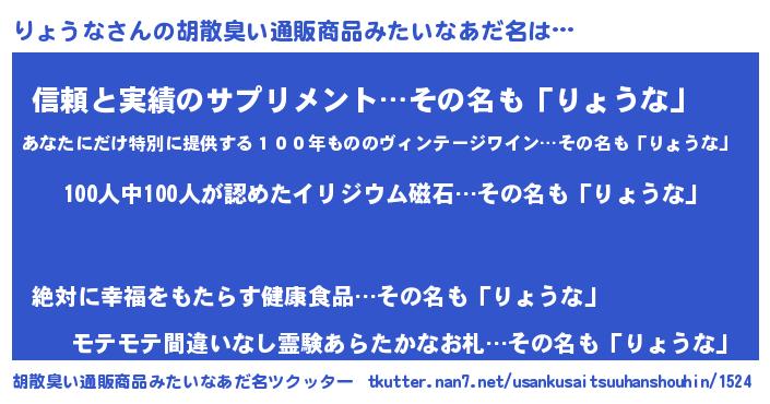 | ヒーロー風カッコイイあだ名 | 『正義の使者りょうな』『暗黒騎士リョ』 |