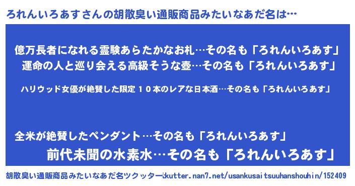 | 意味不明あだ名 | 『住所不定無職ろれんいろあす(43歳)』 |