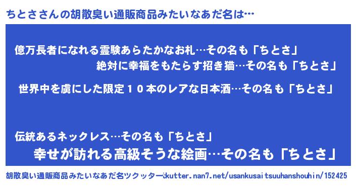 | 恥ずかしいあだ名 | 『プリティーちとさ』『ちとっちょ』 |