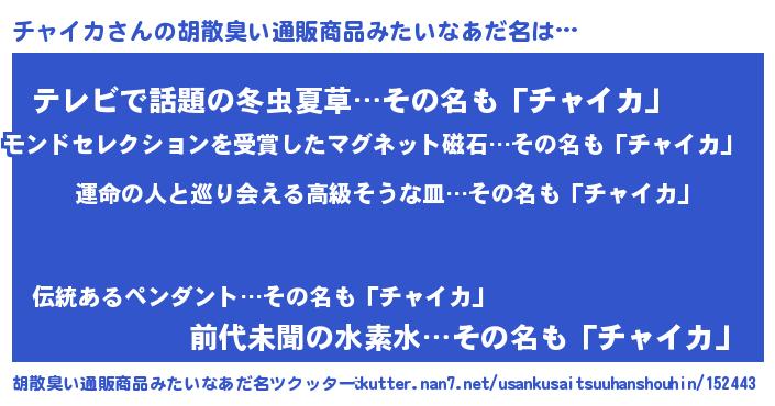 | 意味不明あだ名 | 『チャイカフォーエバー』『自称チャイカ』 |